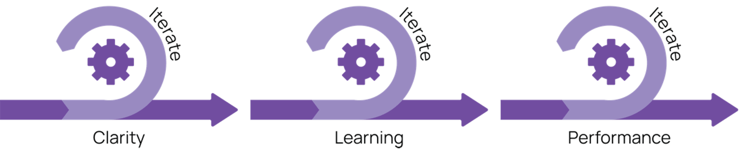CLIP stands for Clarity, Learning, Iteration, and Performance, a performance-focused framework that ensures learning programs connect directly to measurable business outcomes.